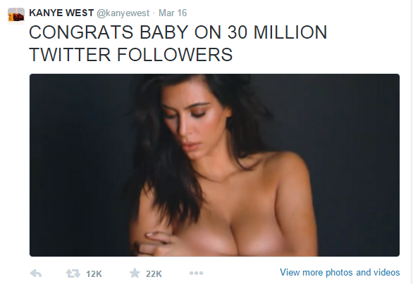 March 16 ~ Certainly we can’t forget about Kanye celebrating his love for his wife openly on social media.