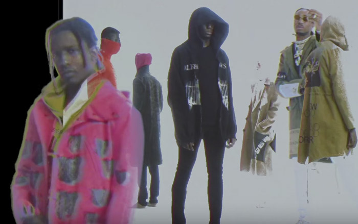 Rocky, Playboi Carti, Quavo and Swoosh God shine in this grainy, deconstructed visual tribute. The backdrop was inspired by Raf’s inaugural 1995 Fall/Winter show at the Daniele Ghiselli showroom in Milan.