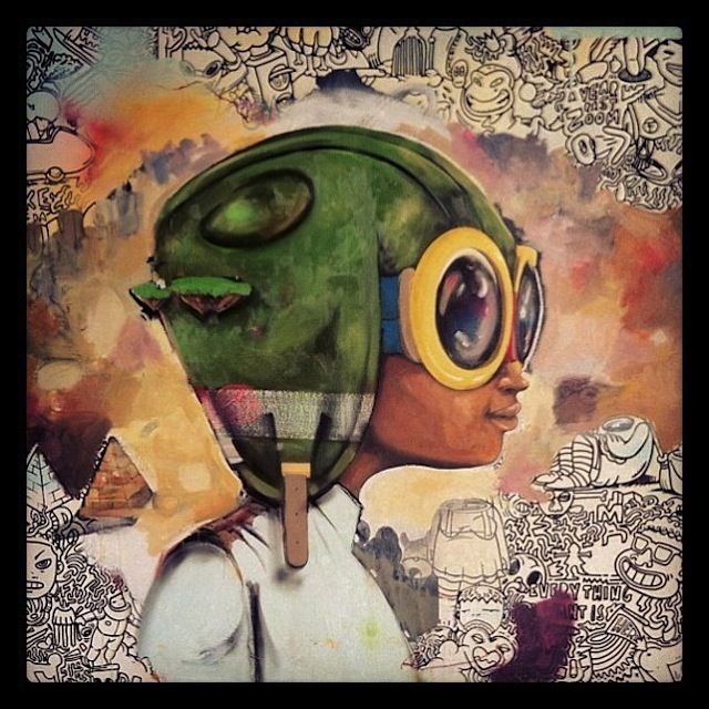 Hebru Brantley of Chicago, constantly fulfills and redefines the role of an imagineer. He has mastered the art of visual technology and identifies as a spontaneous Afro-Futuristic artist. His artistic endeavors explore the stereotypes and racist propaganda cloaked within different mediums of American mass media. The intricate works of art delivered by Brantley soar beyond the confines of one medium and represent multiple creative iterations.