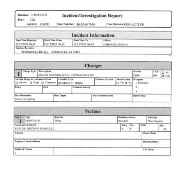 FBI Ballistics report determined 1 of Myles Cosgrove 16 discharged bullets resulted in Breonna Taylor’s demise