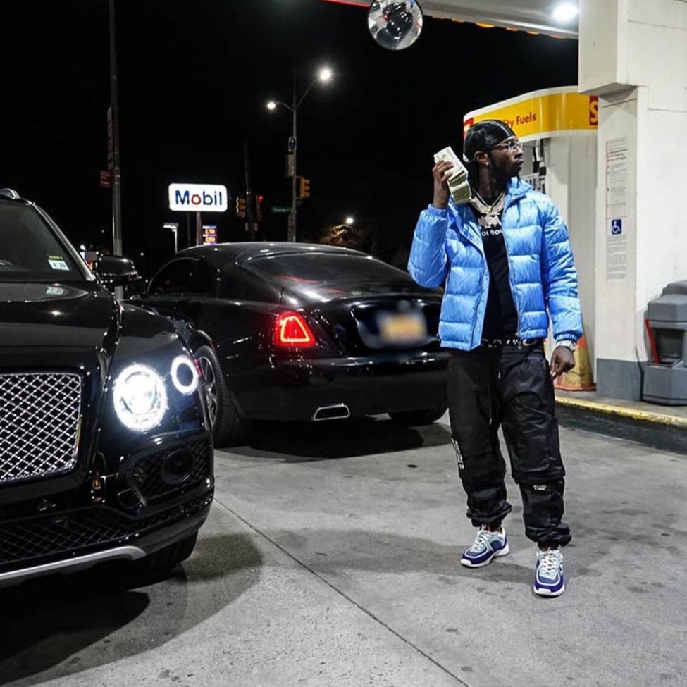 Pop Smoke poses near an allegedly stolen Rolls Royce – he allegedly loaded it in on a flatbed from LA to NY after it was loaned to him for a video shoot
