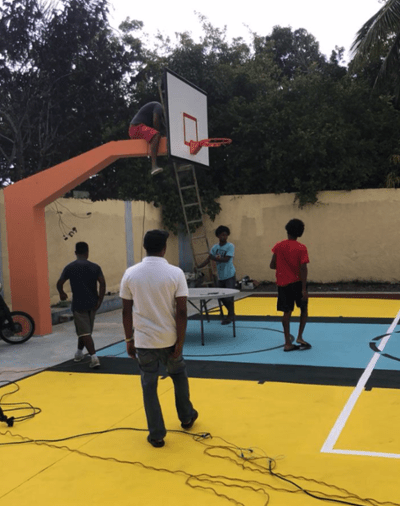 Island Hoops Project and Full Court Peace initiatives brought radiance and function to a once dilapidated basketball court in Los Mina. They provided extra grip surfaces, new lights, new hoops and repaired the bleachers. Puma donated $5,000 and 300 sneakers which brought their fundraising total to $10,000 for this basketball renovation.