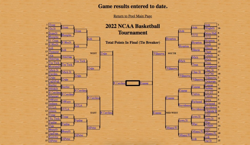 A Kitty is another name for pool or bracket contest. It has been running since 1989 and carries the most incredible interface for any NCAA Basketball tournament contest. That sleek and squeaky hardwood reminiscent of John Wooden greatness can not be replicated or duplicated – only appreciated.